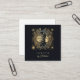 Mystical celestial business card design features an elegant mystical sun and moon illustration with stars, in yellow gold on black.