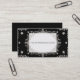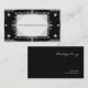Embrace an aura of mystical elegance with this enchanting and ornate business card. The captivating design features intricate, silver-coloured botanical vines and flourishes that create a stunning frame, reminiscent of vintage metalwork or elegant embroidery. A scattering of celestial silver stars adds a touch of magic and wonder to the composition, all set against a dramatic, deep black background. At the centre, a classic frame provides a sophisticated space for your professional details, beautifully enclosed by the whimsical botanical details. This unique and artistic design is perfect for tarot readers, astrologers, spiritual practitioners, artisans, fantasy authors, tattoo artists, and boutique owners with a celestial or gothic aesthetic. Let this magical and sophisticated design leave a memorable and enchanting impression.