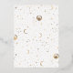 This invitation unfolds the prologue to a wondrous journey, envisioned for lovers planning a celestial-themed union under motifs such as "Under the Stars," "Written in the Stars," or "To the Moon and Back." It paints a canvas of the universe's grandeur, dotted with mysterious planets, expansive galaxies, and timeless constellations, all viewed through a lens of romantic and chic bohemia. Adorned with a pristine white backdrop and genuine gold foil accents, this invite doesn't just attract glances - it ensnares hearts with its fusion of the enigmatic and the elegantly modern. Designed to ignite the imaginations of all who receive it, this invitation heralds a celebration of love that's bound to be extraordinary.