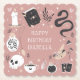 Planning a fortune teller, gypsy, or Halloween themed birthday party? Accessorise with these spooky chic personalised paper coasters in a boho nature inspired colour palette. Design features illustrations of a snake, spellbook, candle, jar, skull, tarot cards, and potion surrounding your custom text.