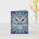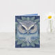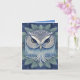 This whimsical fantasy forest owl is depicted as a magical and mystical creature, with it's piercing yellow eyes and unique feather pattern. It is set on a background of winter foliage and enchanting, sparkling stars amongst the night sky.
