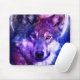 Mystical Galaxy Wolf Face with Full Moon Mouse Mat