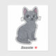 Adorable mystical cartoon grey cat with big eyes, pink eas and covered in stars and sparkles.