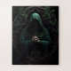 Mystical Hooded Figure in Green Praying Jigsaw Puzzle