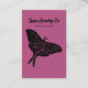 A hand-drawn black block print Butterfly design on a magenta pink background with an area to display a custom brooch, enamel, lapel, ceramic, metal, polymer clay, or acrylic pin. Customize this design yourself to suit your business needs. Check out the rest of this Jewelry Display Card suite!