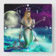 Mystical Mermaid Ocean Waves Moon Beach Fantasy Square Wall Clock