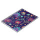 Immerse yourself in a world of enchanting color with this elaborate seamless pattern. Against a deep, dark teal or black background, illuminated lotus-style flowers bloom in vibrant shades of magenta, purple, turquoise, and coral. The design is rich with intricate gold/yellow linework, twirling vines, celestial elements like stars and crescent moons, and smaller decorative blossoms. This bohemian, maximalist, and mystical design is perfect for products requiring a dark, magical, and highly detailed pattern.