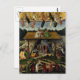 The Mystical Nativity by Sandro Botticelli, c. 1500, is a brightly colourful egg tempera painting on wood depicting the Holy Family in a manger at the birth of Christ, with a host of angels processioning across the heavens and surrounding the Wise Men and onlookers. In this painting the figures of Mary, Joseph, Jesus and angels and the surrounding landscape of trees still show the flatness and clean outlines from Botticelli’s Gothic roots, with one foot set in the Renaissance world of depth and linear perspective.