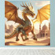 Mystical Oriental Dragon Over Desert City – Fantas Canvas Print
