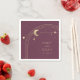 Mystical Plum Gold Sun Star Moon Astronomy Space Wedding Napkins features sun, moon and stars with a gold frame on a plum background. Personalise with your names and date or custom text in the centre. Designed for you by © Evco Studio. Part of a collection at www.zazzle.com/store/evcostudio