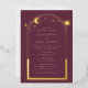 Mystical Plum Gold Sun Moon Stars Astronomy Space Photo Foil Wedding Invitations features sun, moon and stars with a gold frame on a plum background. Inside is your custom wedding invitation information. Personalise by editing the text in the text boxes and adding your favourite photo. Designed for you by ©2022 Evco Studio www.zazzle.com/store/evcostudio
