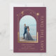 Mystical Plum Gold Sun Moon Stars Space Astronomy Cosmic Save The Dates features a gold sun, moon and stars frame on a plum background. Inside is your favourite photo and your custom save the date information. Add an additional photo on the reverse. Personalise by editing the text in the text boxes. Designed for you by ©2022 Evco Studio www.zazzle.com/store/evcostudio
