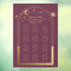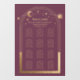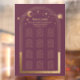 Mystical Plum Gold Sun Moon Stars Astronomy Celestial Cosmic Galaxy Space Wedding Seating Chart Window Cling features a gold sun, moon and stars frame on a plum background. Inside the frame is the text "Welcome" in elegant gold calligraphy script and your custom wedding reception seating chart information. Personalise by editing the text in the text boxes provided. Designed for you by ©2022 Evco Studio www.zazzle.com/store/evcostudio