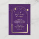 Mystical Purple Gold Sun Moon Stars Astronomy Space Celestial Wedding Website RSVP QR Code Enclosure Cards features gold sun, moon and stars frame on a purple background. The text can easily be personalised with your names, wedding website, scannable QR code and message for a unique one of a kind wedding design to keep your friends and family up to date about your upcoming special day. Designed for you by ©2022 Evco Studio. View www.zazzle.com/store/evcostudio for more products in this collection