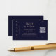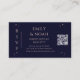 Mystical Rainbow Dark Navy Blue Budget QR Code RSVP Wedding Website Sun Moon Stars Celestial Cosmic Astronomy Space Wedding Enclosure Cards features golden stars on a dark navy blue background with your custom wedding website QR code. Personalise by editing the text in the text boxes provided. Designed by Evco Studio www.zazzle.com/store/evcostudio