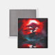 Dramatic fantasy landscape with a glowing crimson tree standing beneath a luminous full moon.