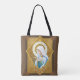 This design is inspired by a beautiful painted and embroidered decal on a Roman Catholic vestment worn for masses of the Blessed Mother. She holds a stem of lilies in her hands, a bouquet of roses frame her, a halo crowns her head.