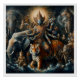 The artwork depicts a powerful and mystical scene, blending elements of spirituality, mythology, and nature. The central figure exudes a sense of serenity and strength, while the surrounding animals add to the overall aura of power and mystique.