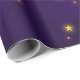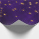 Purple and gold distressed wrapping paper with luminous golden stars.