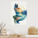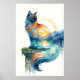 Mystical Sunset Cat Double Exposure Watercolor Poster