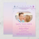 Mystical Sunset Pink Sun Moon Stars Space Save The Dates features a pink and purple sun, moon and stars frame on a pastel beach sunset background. Inside is your favourite photo and your custom save the date information. Personalise by editing the text in the text boxes. Designed for you by ©Evco Studio www.zazzle.com/store/evcostudio