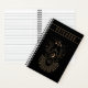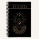 This black spiral notebook is a stunning blend of celestial charm and contemporary style, designed to inspire creativity and organisation in equal measure. The cover features an elegant design of moons, stars, and intricate geometric shapes, combining cosmic wonder with sleek modern aesthetics. The word "Notebook" is prominently displayed above in a clean, contemporary font, perfectly framing the magical design. The rich black background adds depth and sophistication, while the luminous celestial and geometric elements create a striking visual contrast that captures attention and sparks the imagination.