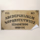This luxurious beach towel features a mystical spirit board design. The background is a rustic looking, antique wood or parchment paper pattern. A vintage, gothic style frame borders the towel. The alphabet and numbers are printed across the centre, with simple "yes" and "no" answers printed above. A "good bye" message is at the bottom.