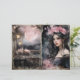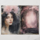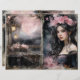 Mystical Victorian Lady Balcony Pink Junk Journal Page With different artwork on each side, vintage style, ladies and flowers in moonlight blues. For your junk journalling and scrapbooking projects.