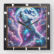 Mystical Wolf Howling Under Vibrant Cosmic Moonlit Square Wall Clock
