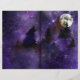 Dark purple nights sky full of stars, a shadowed forest, howling wolf and full moon.  This scrapbook paper is perfect for dark journals, book of shadows or wild forest creations. The design has a double page spread style so you simply fold to create two pages. The rear image is purple without graphics for you to add your own paper collages and scraps.