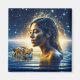 Ai art depicting a beautiful woman swimming in serene water with a tiger under the stars.