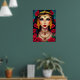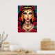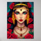 Mystical Woman with Blue Eyes and Red Roses Poster