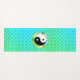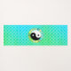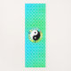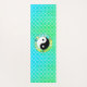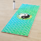 This powerful yin yang symbol has a meander Greek border with blue, yellow and green shades. The backdrop is a vibrant, blue green quartrefoil pattern that ties in this mystical yin yang yoga mat. Hypnotic and inspiring.