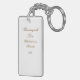 The reverse side offers a minimalist contrast: a clean white background featuring an elegant script in a refined gold-toned hue. The text, name, and year can be easily customized, making this keyring a truly unique and personalized gift.