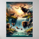 Mystique Land Wildlife Waterfall Fantasy Poster