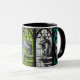 Step into a world of shadow and splendor with this Gothic stained glass mug, featuring four vertical panels inspired by cathedral windows. Each panel showcases a mythic guardian: a regal griffin in violet, a fallen angel in crimson, a crouching gargoyle in emerald, and a skull adorned with sacred carvings in sapphire. Framed in pointed arches and crowned with rosette medallions, the design evokes medieval grandeur and symbolic depth. Cracked glass textures and muted tones add a vintage, mysterious aura. Ideal for lovers of dark fantasy, mythic art, and Gothic architecture.