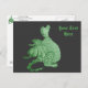 This very cute little green dragon is stretching his wings and smiling, all his baby dragon scales are emphasised by a darker green outline that’s softly blended. He’s a special little green dragon that I created in pencil some time ago, I digitally enhanced the image of the drawing to become a vibrant green colour. The happy cute dragon is unique and completely original, he’s sure to get lots of attention wherever you go, This little dragon can only be seen on products produced by artoriginals. This is a customisable post card, you can personalise it with your own text.