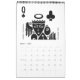 Each month is illustrated by a single playing card, a queen, king or jack from all four major suites: Spades, Hearts, Diamonds and Clubs. The illustrated characters represent ancient mythological deities.