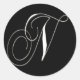 N monogram with a black background, white script initial and silver border. Perfect sticker for your wedding envelopes, gift bags, or other decor for your elegant wedding.
