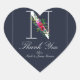N Monogram Last Initial Modern Blue Floral Wedding Heart Sticker