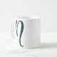 Calligraphy of the letter N on a basic mug with blue accents