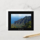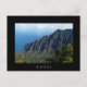 Postcard of the rugged cliffs of the Kalalau Valley at the Na Pali Coast of Kauai, Hawaii, USA seen from the Kalalau Valley Lookout Point and accessible via the Kalalau Trail with a black border and the text: 'Kauai'.