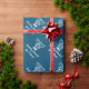 Nadolig Llawen! Welsh Merry Christmas custom Wrapping Paper. Chic Xmas bell design. Personalised gift wrap idea with custom name and Holidays message. Customisable blue background colour.