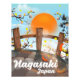Nagasaki Japan blossom poster. beautiful pink Japanese cartoon travel poster.