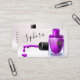 Nail Art Technician Business Card - Orchid nail polish dripping from the brush with gold calligraphy - Simple front - just your name and phone with a memorable graphic , perfect for full service nail art salon