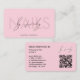 Nail Artist Aesthetic Pink Pastel Manicurist Monogram Elegant Modern business card with QR code