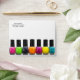 Colourful and stylish design features bright bottles of nail polish in pink, purple, green, orange, yellow, blue and green. The perfect compliment to your nail salon business. Customise the text to fit your needs.