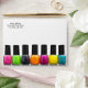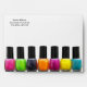 Colourful and stylish design features bright bottles of nail polish in pink, purple, green, orange, yellow, blue and green. The perfect compliment to your nail salon business. Customise the text to fit your needs.