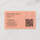 Nail Technician Nail Art Manicurist Peach Modern Monogram Professional business card with QR code