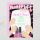 Start your celebration off right with this adorable girls spa/ Manicure party invitation. Whether it's a party home or out girls just love to be pampered at any age. This invite has two sets of hands both with beautifully polished nails. There'a two bottles of nail polish :pink and purple with glitter or shine in it near the bottom of the invite. The top has bright lettering spelling out "Manicure party" in light pale pink. The background is a black and hot pink zebra print . Check out the many other products and design in this adorable line. ©JW Illustrations